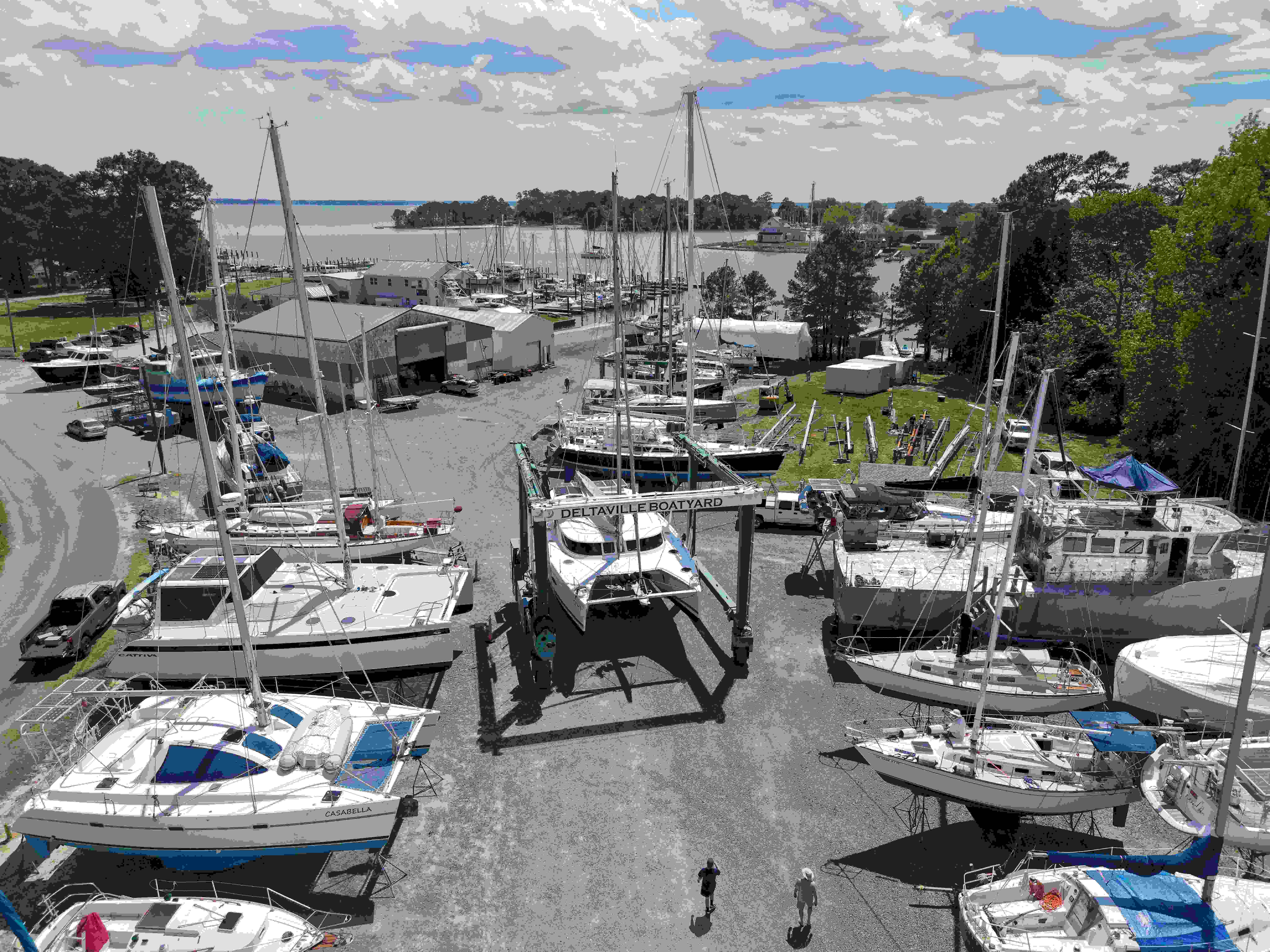 In Deltavillle, noch auf dem Trockenen liegend, begegneten wir zufällig einem Pärchen mit Hund aus Frankreich und kamen im Gespräch auf die Bermudas und ihre Regeln bei der Einreise zu sprechen. Wir erfuhren mit Erstaunen, dass Bermuda äußerst strenge Lebensmittelgesetze haben soll. Die Einfuhr von Fleisch und anderen Lebensmitteln ist in Bermuda verboten und es bedürfe eines veterinärmedizinischen Gutachtens über die Herkunft des Fleisches, um es legal einzuführen. Ebenso sind Kartoffel, Zitronen, Grapefruit, Trauben, und überhaupt frische Früchte und Gemüsesorten verboten. Nur bei Konserven wäre man auf der sicheren Seite. Das erfuhren wir jetzt, nachdem wir noch vor fünf Tagen mit unserem Mietwagen vor der Rückgabe zu einem Großeinkauf zu Walmart fuhren. Wir besorgten dort alle oben genannten Lebensmittel und verstauten sie dann auf SYMI in unserem Tiefkühler und diversen Orten. Ich bemerkte bei der Kontrolle der Kühltemperatur, dass der Tiefkühler nicht mehr seine Tiefsttemperatur von -16° erreichte, baute ihn aus dem Wandschrank aus und diagnostizierte dann, dass der Ventilator am Wärmetauscher nicht mehr funktionierte. Somit schnell in die Rezeption des Boatyards gezischt, um wieder Mal eine neue Bestellung aufzugeben. Einen, wie in jedem PC installierten, 12 V Ventilator, der Gott sei Dank innerhalb eines Tages ankam und montiert wurde. Gefriergut gerettet. Jetzt läuft der Tiefkühler wieder wie er soll.