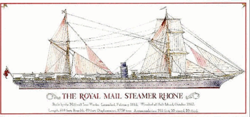 Sie wurde am 29. Oktober 1867 bei dem Versuch sich vor einem Hurrikan der Kategorie 3 auf die offene See zu retten, in der Inseldurchfahrt an einen Felsen geschmettert, dabei explodierte der Dampfkessel und zerriss das 90 m lange Schiff, das in der englischen Navy als unsinkbar galt, in drei Teile.