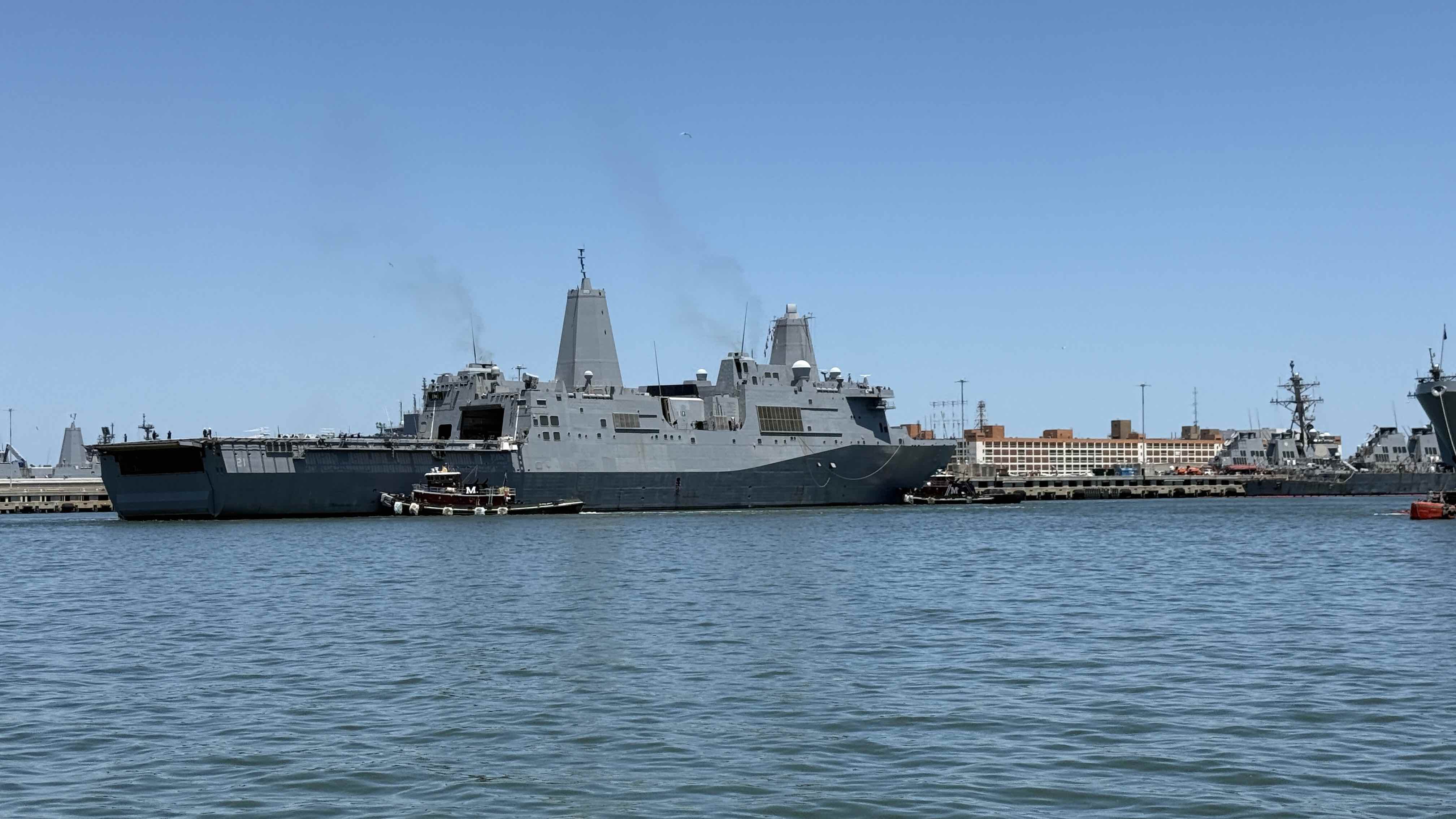 Vor 10 Tagen beschlossen wir die hektische und so großschiffslastige Stadt Norfolk zu verlassen und uns näher an unser endgültiges Sommerziel anzupirschen. Die Ausfahrt aus unserer Ankerbucht, bis zum Erreichen der großen Chesapeak Bay, ist gute 9 Kilometer lang. Du motorst vorbei an einem Trockendock nach dem Anderen. Überall werden hier die grauen Riesenschiffe mit der Weissen Nummer am Bug geservicet oder was immer die Navy damit macht (ist natürlich Geheimsache). Ich hatte den Funk auf Kanal 16 eingestellt und wir trabten mit braven 5 kn am rechten Fahrwasserrand dahin, nicht weit entfernt von einem der grauen Navy Riesen, da hörte ich den Funk kurz und kühl: „Warship 21 is backing up“. Ich sah rechts einen Hafenschlepper und auch die Nummer 21, wie sie ganz langsam ihre 200 Meter aus der Parklücke nach rückwärts schob. Wirklich langsam. Das wird noch dauern, meinte ich zu Andrea und startete den zweiten Motor, um beschleunigen zu können und die Nummer 21 noch vor dem Auslaufen zu passieren. Mit sieben Knoten rasten wir heran. Von Ferne nahm ich akustisch eine typische Sirene eines US Einsatzfahrzeugs wahr, ein Auto dachte ich, die rasen ja dauernd irgendwem hinterher in den USA. Andrea aber schrie aufgeregt, da sind sie, sie kommen näher. Ich blickte mich um und sah ein Schnellboot der Militärpolizei mit blinkenden rot-blauen Einsatzlichtern 50 Meter hinter uns, genau auf uns zukommend. Aus dem Außenlautsprecher hörte ich eine Frauenstimme, konnte aber nicht verrstehen, was sie sagte. Zuviel Lärm und Wind rundherum. Sie kamen näher und ich mir war klar, daß galt SYMI. Ich funkte auf Kanal 16 was ich tun sollte, aber bekam per Funk keine Antwort.