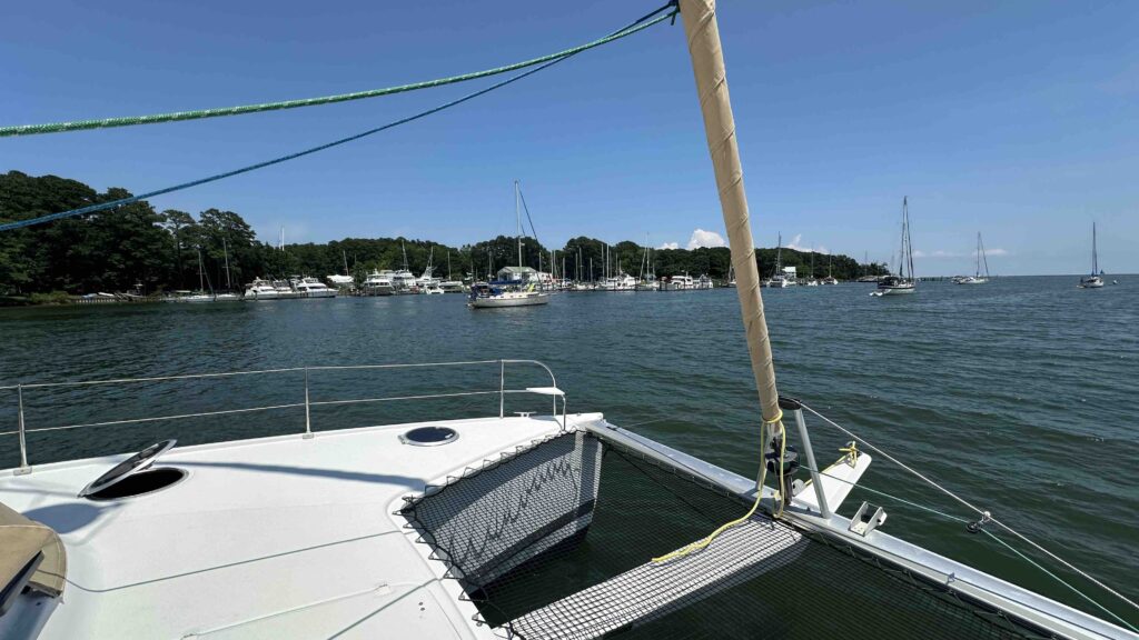 Als wir das weite Wasser erreicht hatte, scheinte bereits wieder die Sonne und nach 5 Stunden Fahrt nahmen wir die schmale und seichte Einfahrt in die Deltaville Marina Bucht und ankerten vor unserem Boatyard.