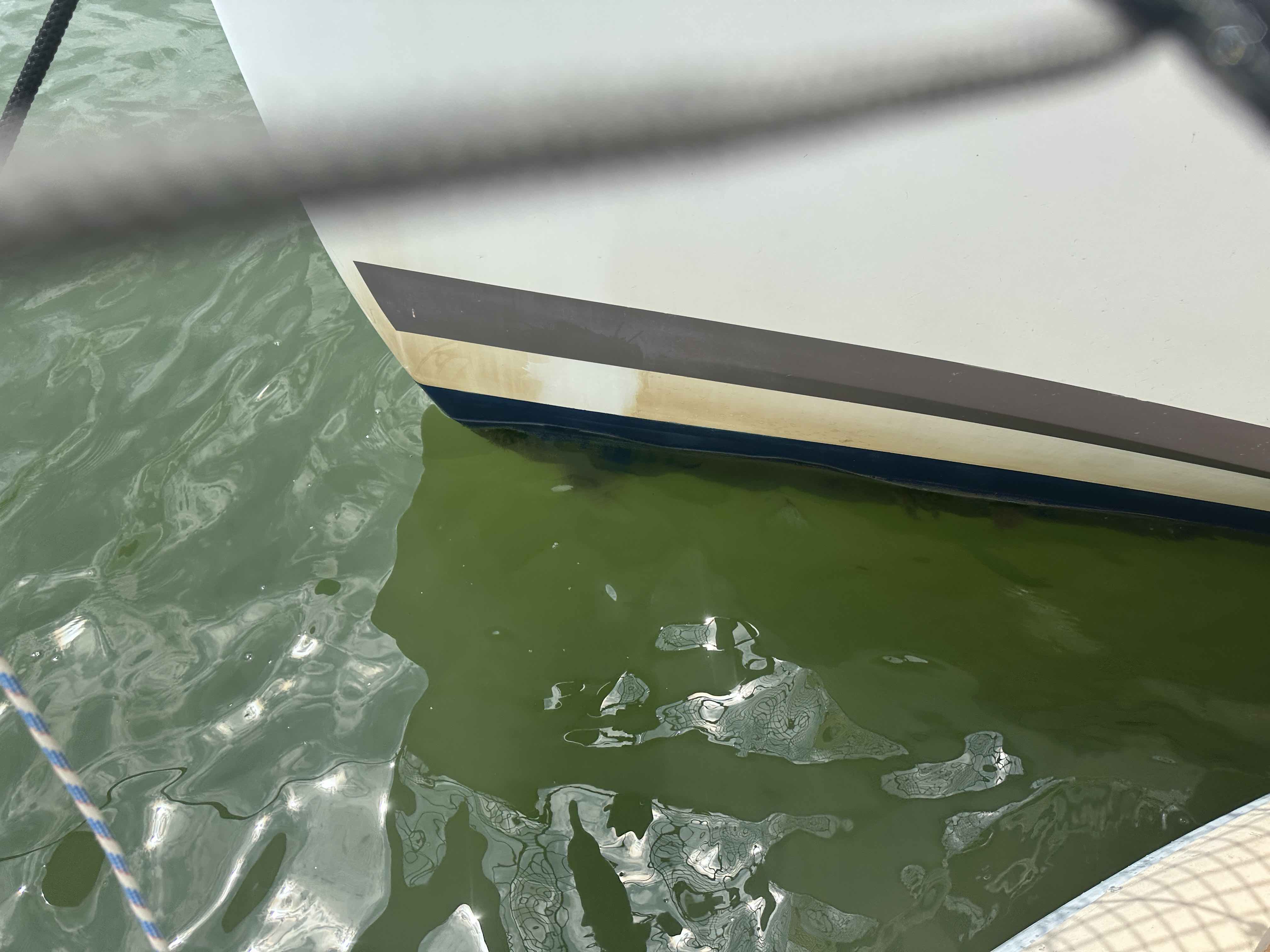 Voller Tatendrang besuchten wir gestern das Büro, fanden es aber leer vor. Die nette, junge Managerin Heidi arbeitete gerade an der Instandsetzung eines Bootes. Dort fanden wir sie schließlich auch. Auf unsere Frage, ob unser Krantermin am 14.7. stattfindet, sagte sie uns, dass leider drei geplante Wasserungen von Yachten wegen technischer Probleme noch nicht stattfinden konnten und wir derzeit keinen Platz am Trockenen hätten. Sie seien total ausgebucht. Das klang nicht gut und ärgerte uns sehr. Nach der komplizierten Vorplanung in den letzten Wochen mit Mietwagen, Zimmersuche, Ersatzteilen, Mechaniker und ganz besonders mit dem Heimflug war das keine gute Nachricht. Also was tun? Abwarten und vielleicht geht’s am Dienstag, meinte Heidi. Wir haben auch gar keine andere Möglichkeit. Es gibt hier in der Nähe keinen anderen Kran, der Katamarane heben könnte. Wir sind positiv und ich erledige einige technische Instandsetzungen schon jetzt vor Anker, damit möglichst wenig übrig bleibt, falls der Termin noch weiter nach hinten geschoben wird. Andrea checkt alle Vorräte nach Ablaufdaten und ordnet alles in Plastikkisten, damit es bei Frost keine bösen Überraschungen gibt. Die To-do-Liste ist immer noch lang, aber es wird schön langsam. Zum Beispiel reinigte ich im Beiboot sitzend den gesamten Flächenbereich über der Wasserlinie, der durch die sechs Wochen im braunen Intra Coastal Waterway Wasser Symis Weiss in grausliches Braun verfärbte. Zum Glück fand ich in meiner Putzmittelsammlung einen speziellen Rumpfreiniger, mit dem es unter körperlich hartem Einsatz gelang, wieder weisse Farbe zum Vorschein zu bringen.