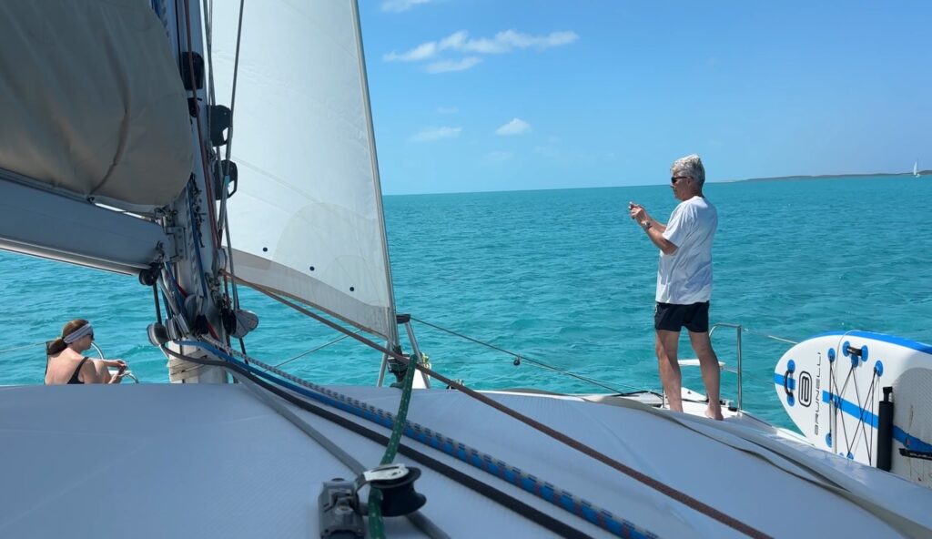 Ich war schon an die ruhige, kleine Welt gewöhnt. Hatte ich wirklich vergessen, dass es selbstverständlich ist, dass alle Menschen ihrer Arbeit nachgehen und jede Stadt und jedes Unternehmen seine Ordnung hat nach Protokollen, die tagtäglich aufs Neue ablaufen. Ich war nicht auf dem Mond und auch nicht in der Südsee, aber ich war weit genug weg von Trubel und Hektik der großen Städte. Dies war jetzt vorbei, das war uns von Anfang an bei der Planung der USA Reise bewusst. Am nächsten Morgen weckte uns Sonnenschein und beim Rundgang um das Bootsdeck, bemerkte ich den nächsten Beweis für die Rückkehr in die Zivilisation. Mit dem starken Regen haben sich offensichtlich Metallpartikel auf dem Boot niedergelassen und die gesamte weiße Decksoberfläche mit braunen Spuren bedeckt. Zuerst dachte ich noch, ich wische es mit dem feuchten Finger weg, musste aber dann mit schwereren Gerät anrücken, einem französischen Spezial Entroster (natürlich biologisch abbaubar). Andrea und ich verbrachten mindestens 4 Stunden, ausgestattet mit je einem kleinen Borstenpinsel, um die sicherlich 200 Roststellen einzeln zu betupfen und nachträglich mit klarem Süßwasser. abzuspülen. Anders war dem Rost nicht beizukommen und wenn man ihn nicht entfernt, würde er ewig auf dem Deck sitzen und sich einbrennen. Woher diese Eisenmoleküle kamen, werden wir nie erfahren.